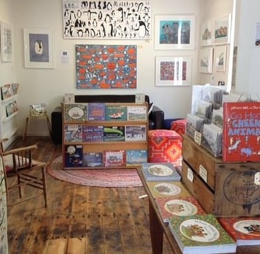 Step into Alison's gallery to explore her creative world. Over 70 limited edition prints line the walls, featuring favorites from "Magic Beach" to "Noni the Pony." All her books are available to purchase.