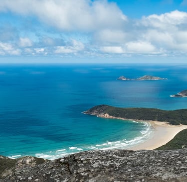 At 558 metres, Mt Oberon isn't particularly high, but the summit punch well above its weight when it comes to views. You get a panoramic sweep of the entire southern tip of the Prom – Tidal River below, the coastline stretching out in both directions, and those distinctive offshore islands dotting the ocean. On a clear day, it's genuinely spectacular.